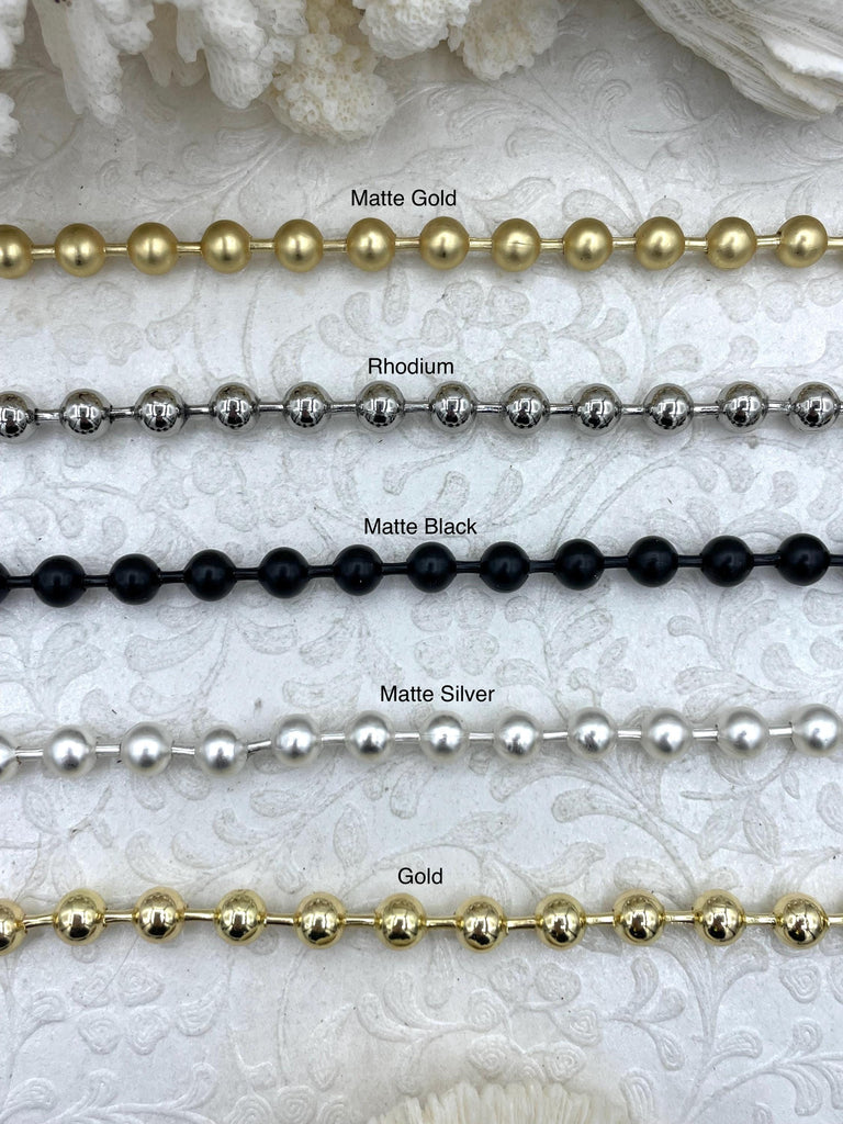 Look no further than our Chunky Ball Chain! This chain is sold by the foot and comes in a continuous strand, so you can order as much as you need. This chain comes in 5 finishes, gold, matte gold, rhodium, matte silver, and matte black. Plus, orders placed by 11:00 am EST Monday-Friday will ship the same day or next business day, so you won't have to wait long to start crafting! Our Chunky Chains are lead and nickel safe, making them perfect for a wide range of jewelry creations. All sales on cut chain are final.