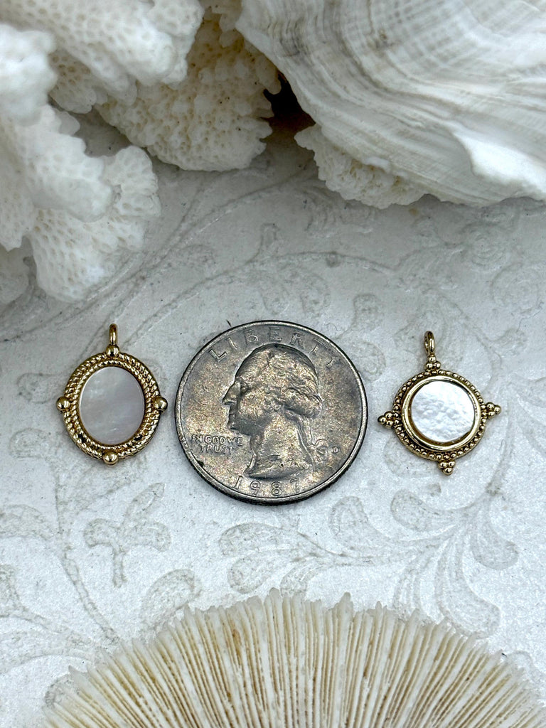 Look no further than our Brass Mother of Pearl Charms! These high quality, gold plated brass charms are versatile and perfect for any occasion. With two styles available, you are sure to find the perfect charm to complete your look. Natural mother of pearl gives each charm a unique, beautiful look.