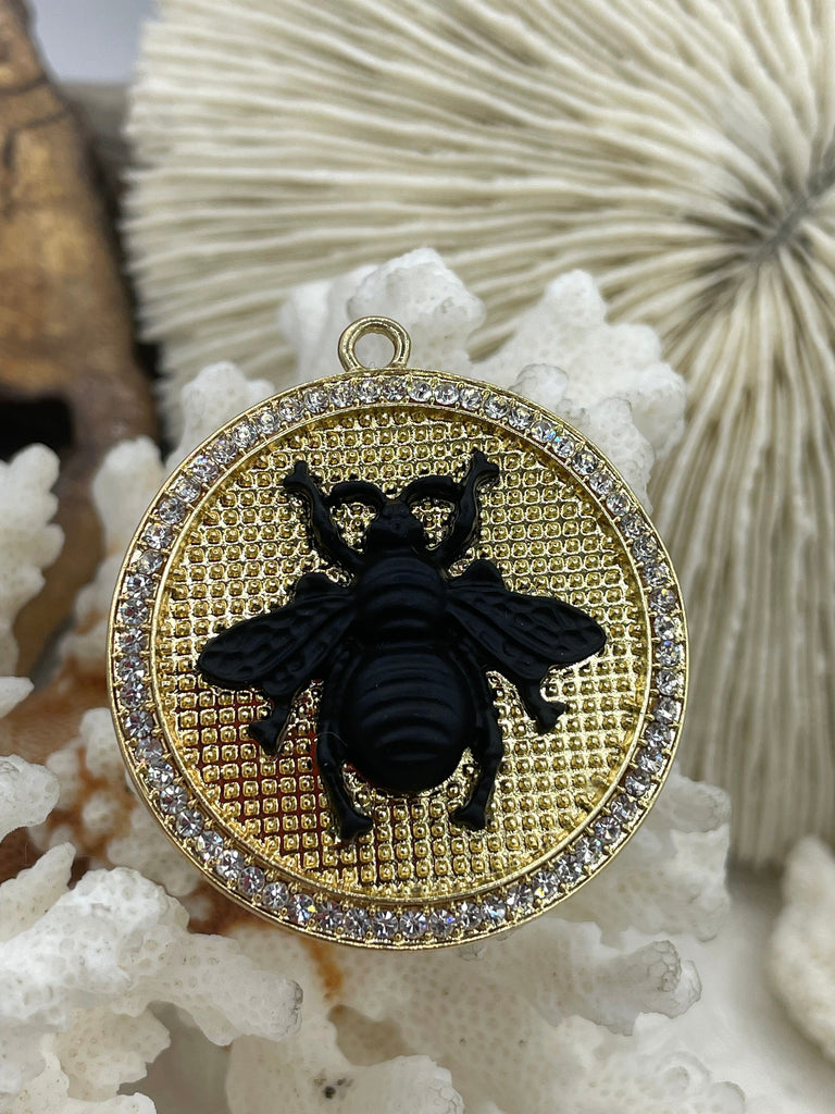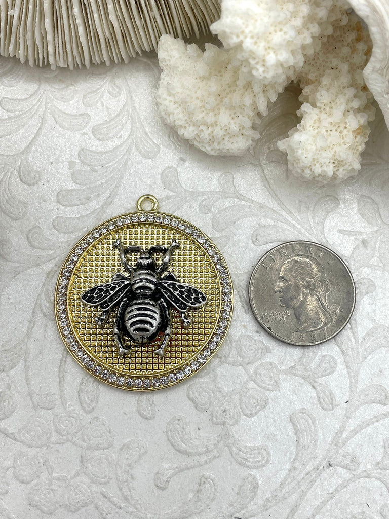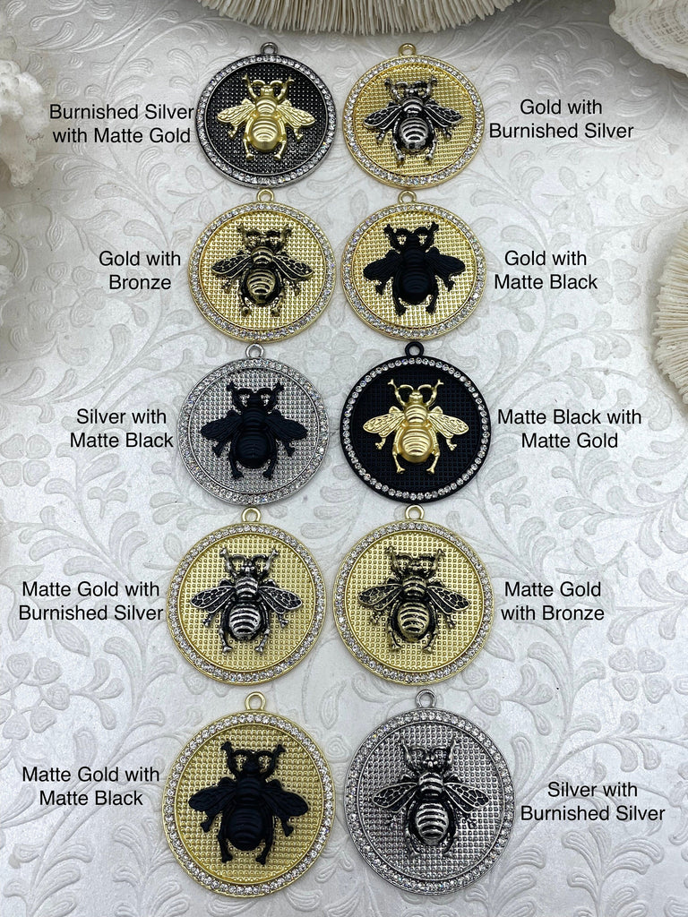 Look no further than our Mixed Metal Bumble Bee Pendants with Cubic Zirconia. With 3 different styles to choose from, you can find the perfect pendant to match your personal style. These pendants are 40mm round and 6.5mm thick, making them the perfect size to stand out without being too heavy. The bale has a 3.2mm inner diameter and 6mm outer diameter, making it easy to pair with your favorite chain.