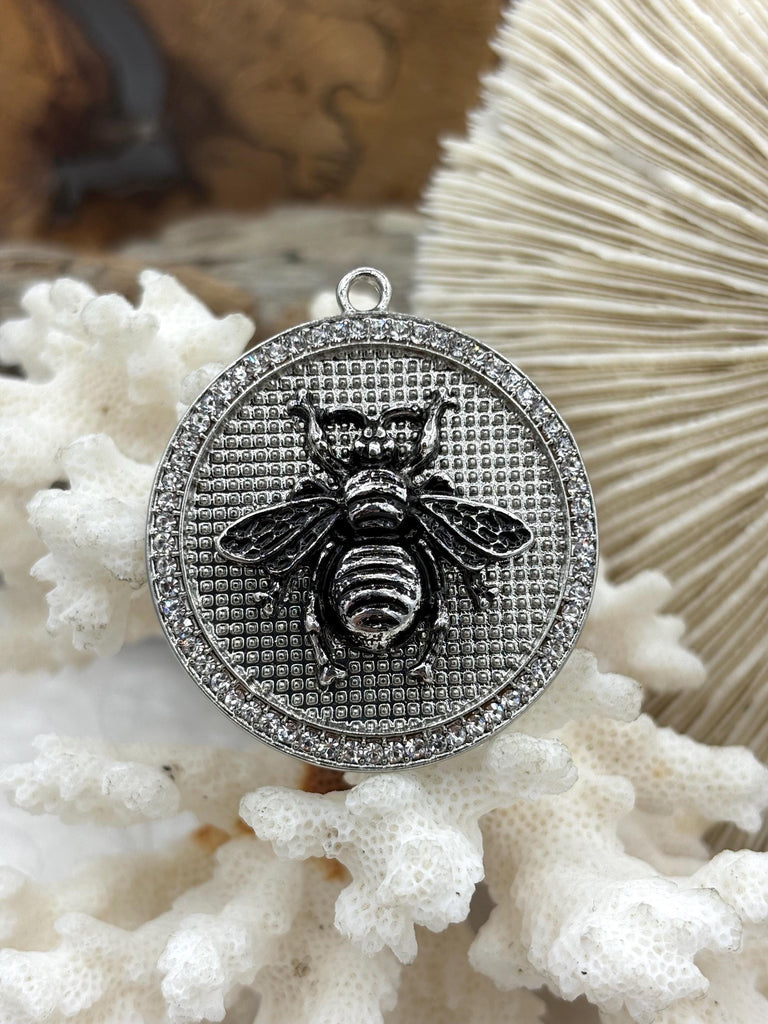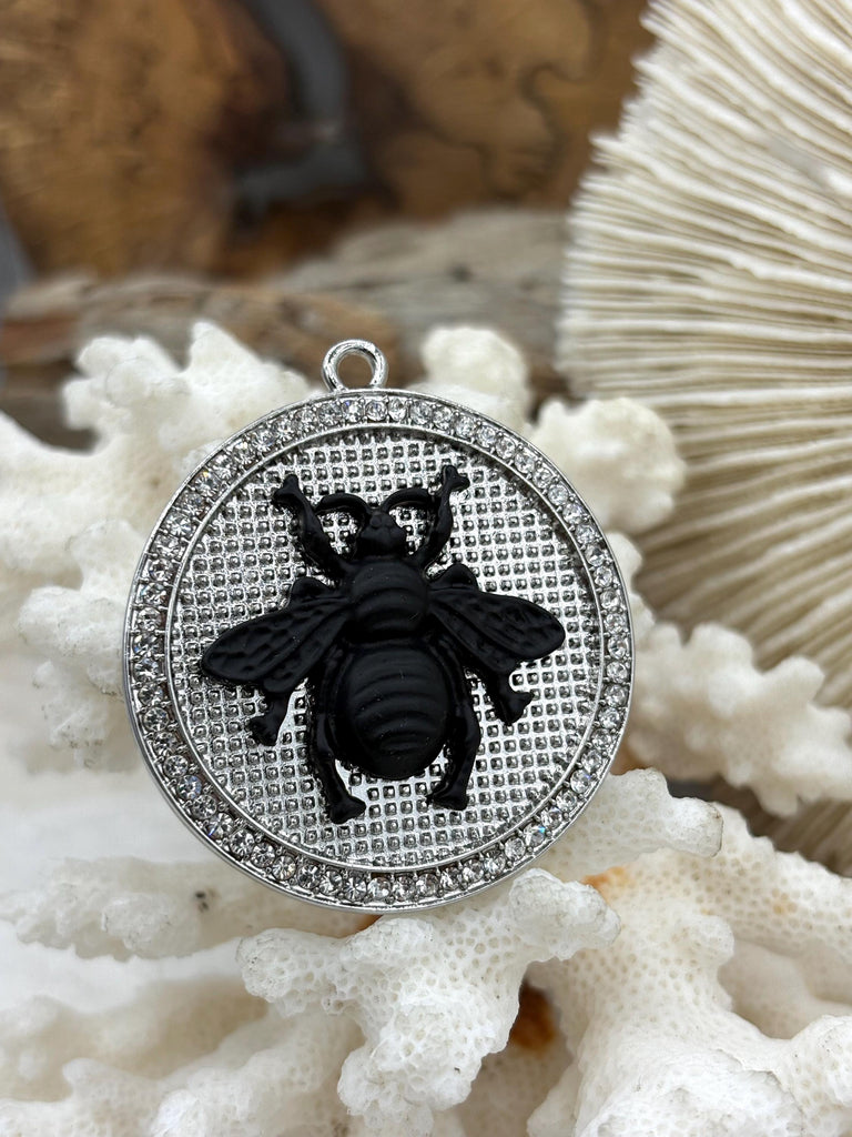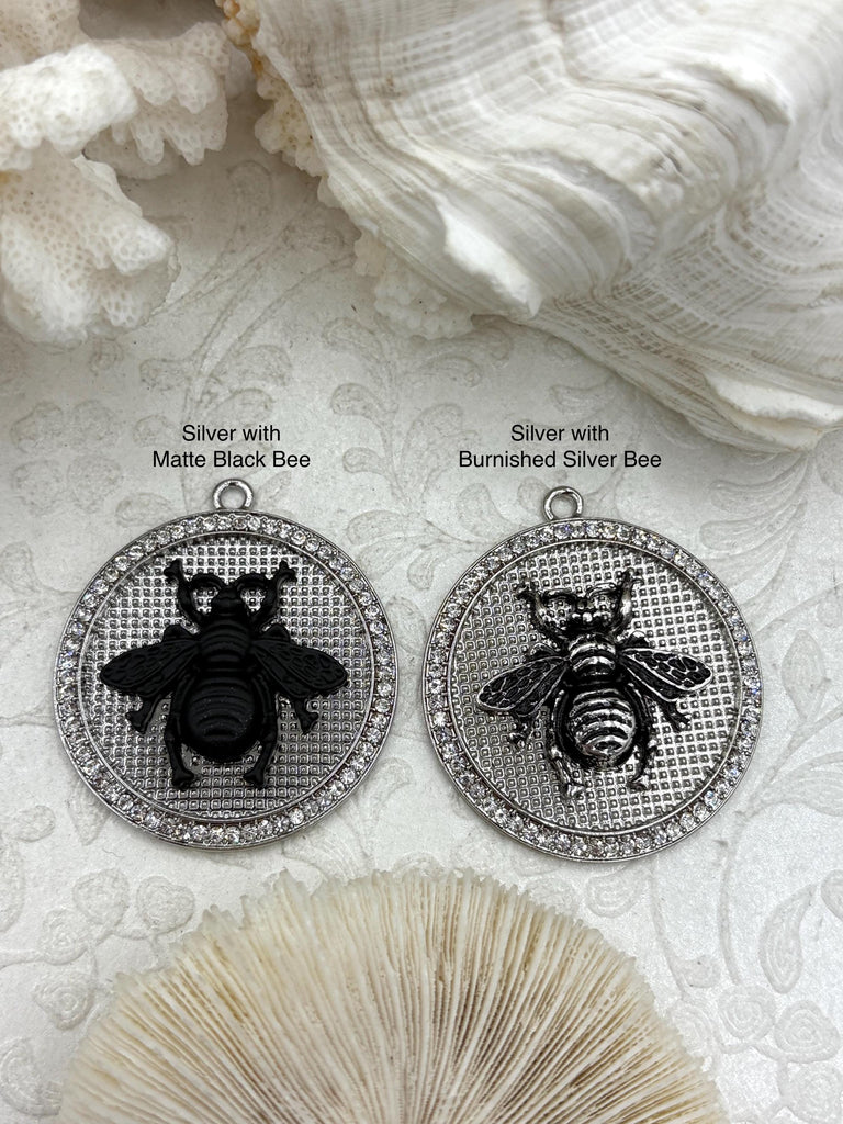 Look no further than our Mixed Metal Bumble Bee Pendants with Cubic Zirconia. With 2 different styles to choose from, you can find the perfect pendant to match your personal style. These pendants are 40mm round and 6.5mm thick, making them the perfect size to stand out without being too heavy. The bale has a 3.2mm inner diameter and 6mm outer diameter, making it easy to pair with your favorite chain.