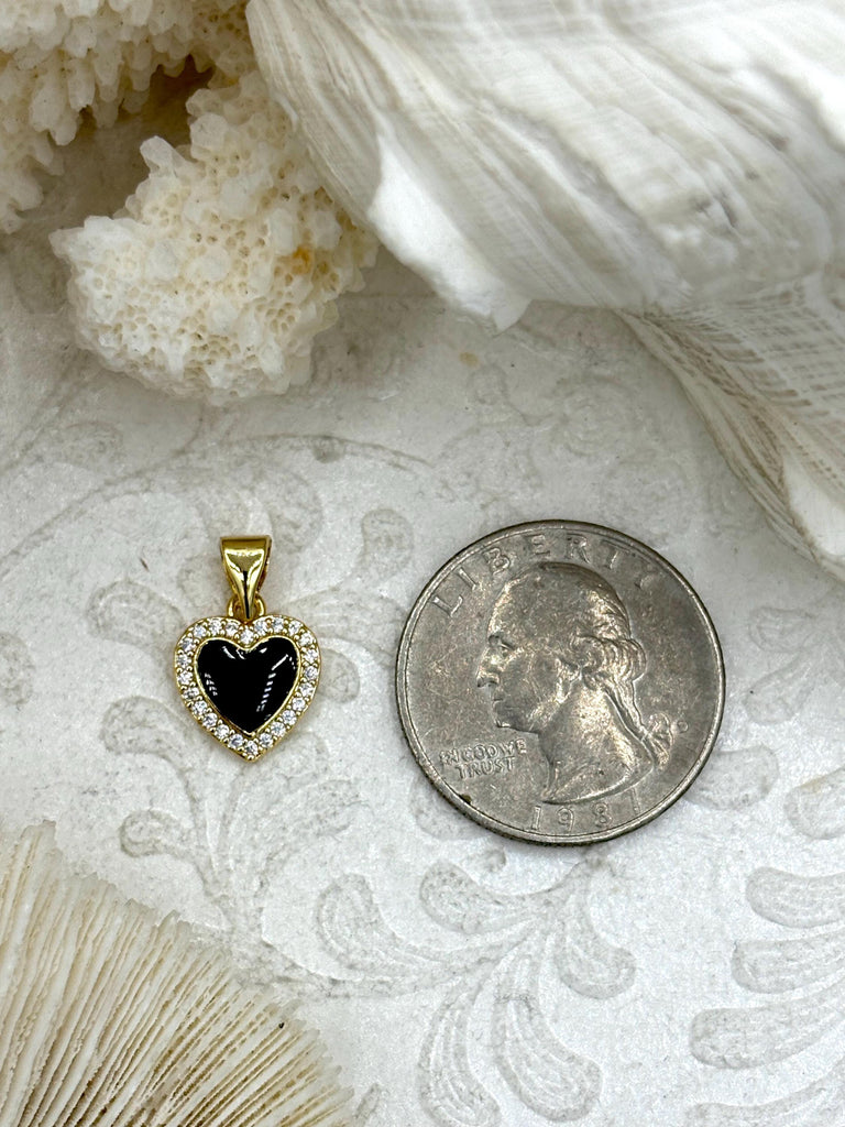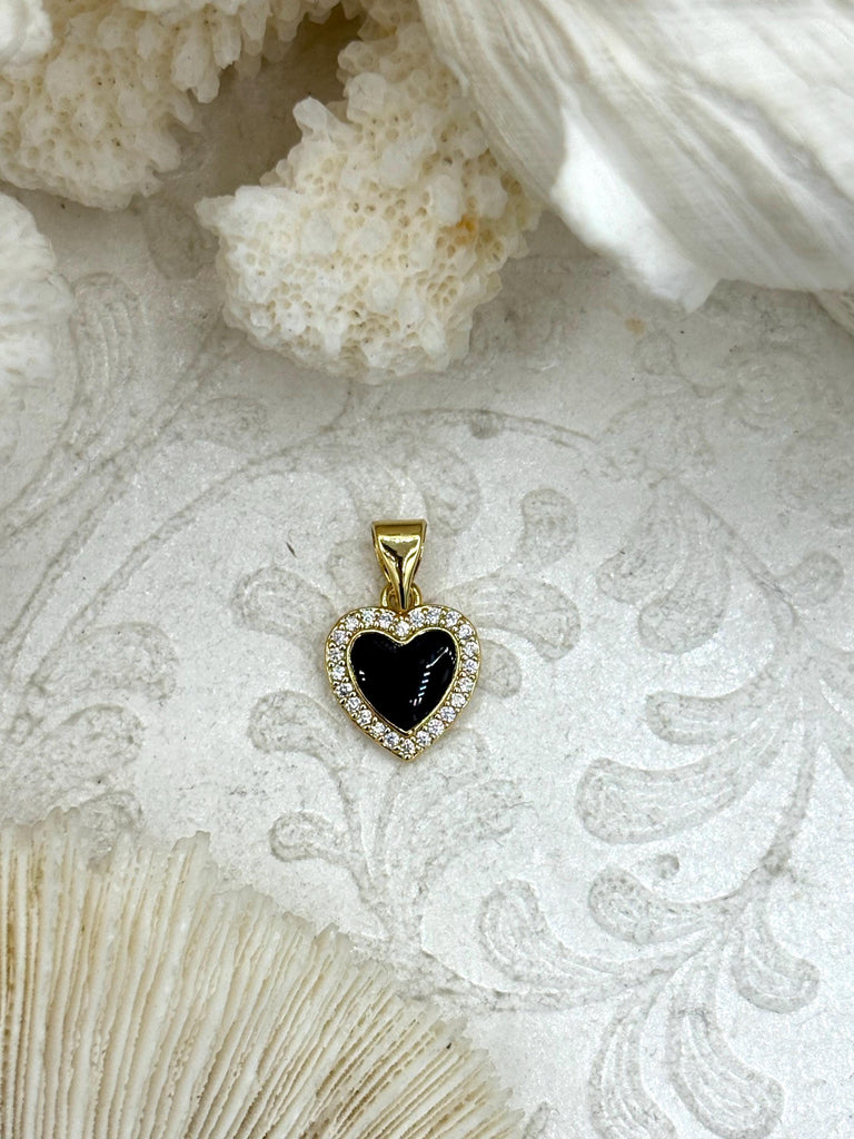 Look no further than our Black Enamel and Gold Heart Charms! Made with high-quality materials such as gold-plated brass, enamel, and cubic zirconia, these charms are not only stylish but also durable.
