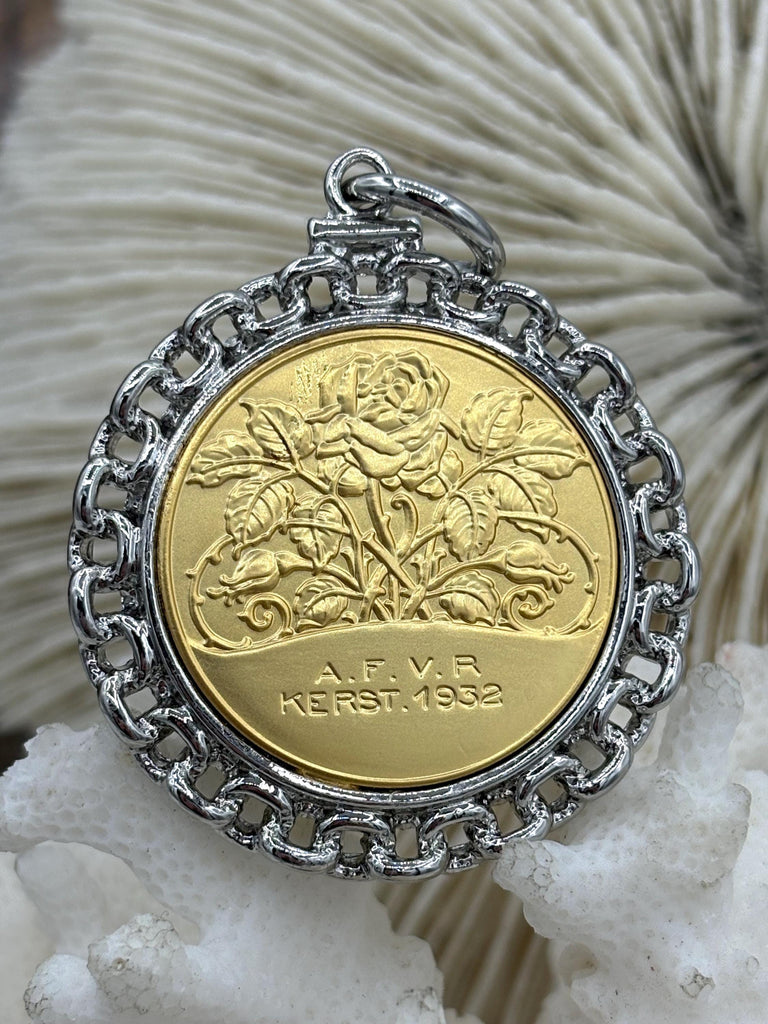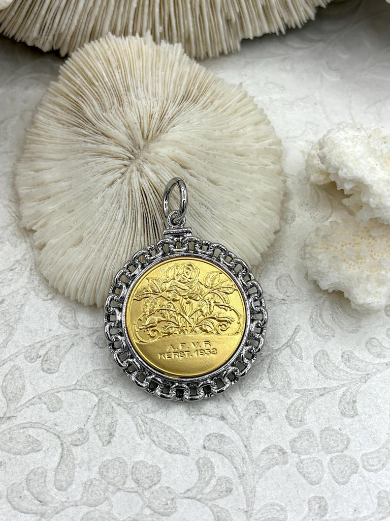 Our Gold Rose Coin Pendants are the perfect choice! Crafted with plated brass and zinc alloy, these pendants feature a classic rose coin design and come set in a rhodium bezel. With a coin size of 28mm and a bezel size of 39mm, these pendants are sure to make a statement. Plus, orders placed by 11:00 am EST Monday-Friday ship the same day or next business day, so you can start wearing your new accessory in no time!