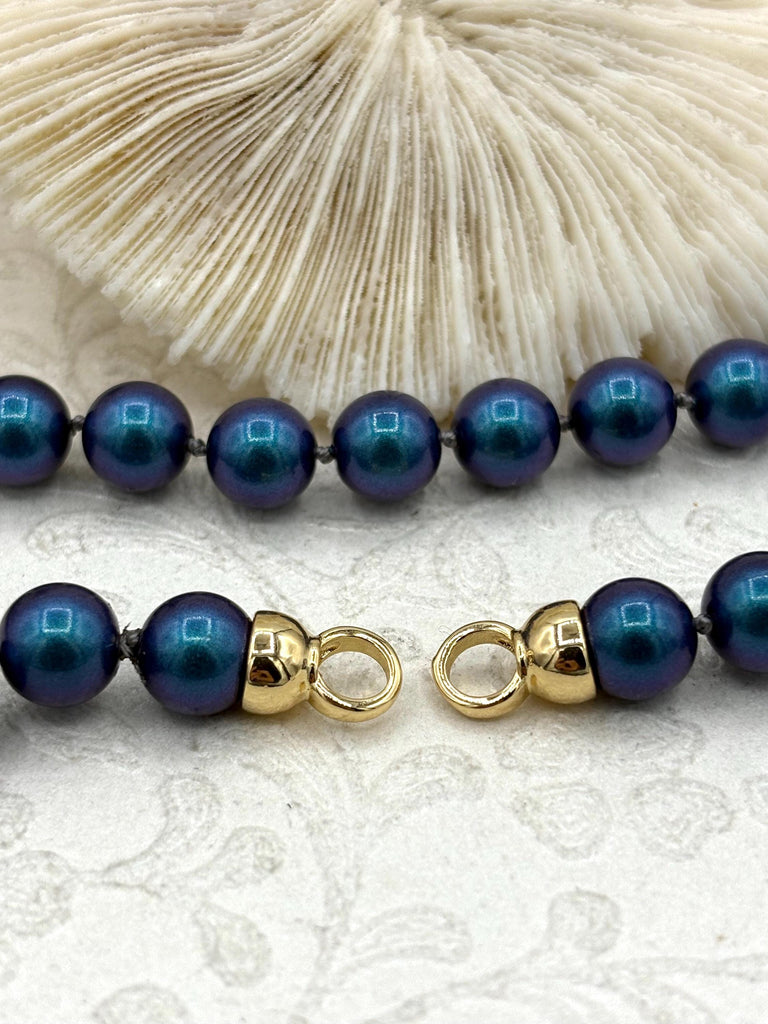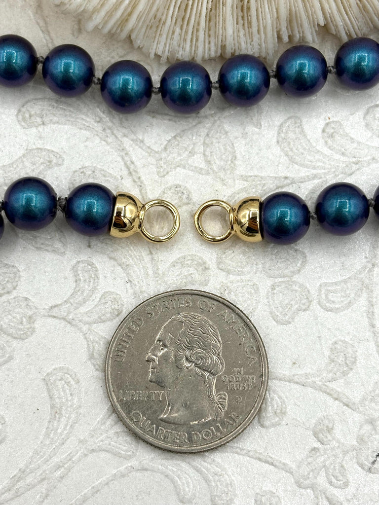 Look no further than this one-of-a-kind necklace! Crafted with blue glass pearl beads, this necklace is 17 inches long and features 4.5mm finished ends in two colors - gold and matte gold - that allow you to add your own clasp. The beads are round and measure approximately 8mm. Plus, it's lead and nickel safe, so you can wear it with confidence. We offer fast shipping - orders placed by 11:00 am EST Monday-Friday ship the same day or next business day - you can start wearing it in no time!