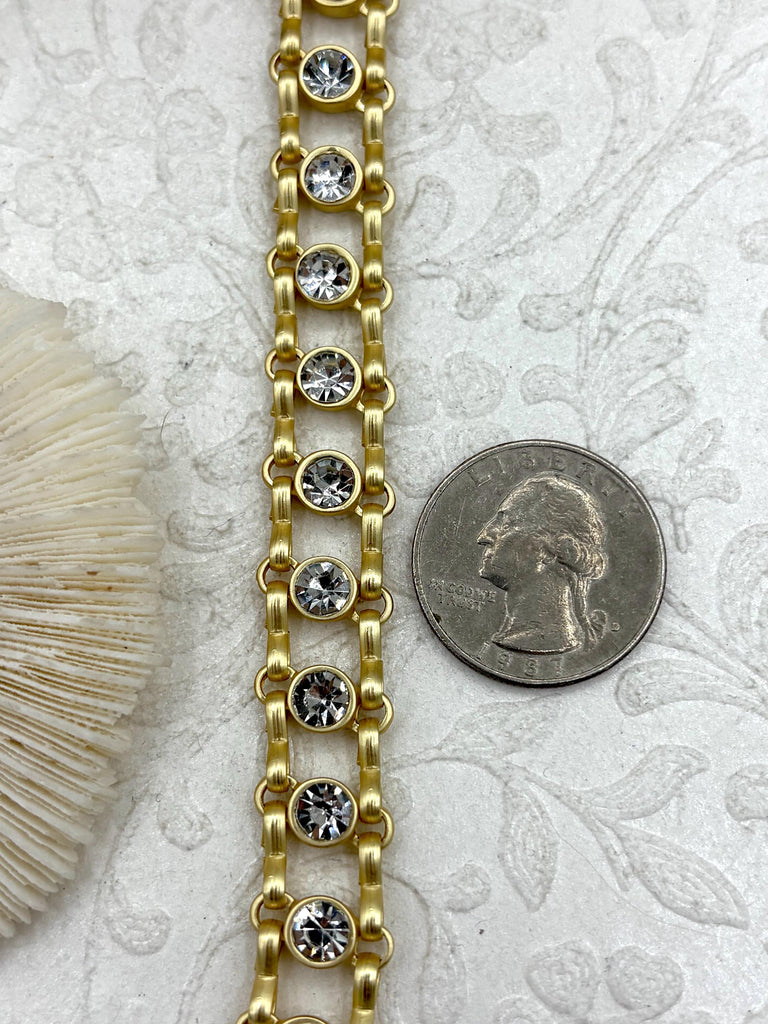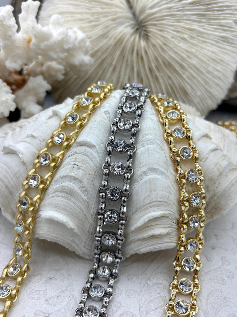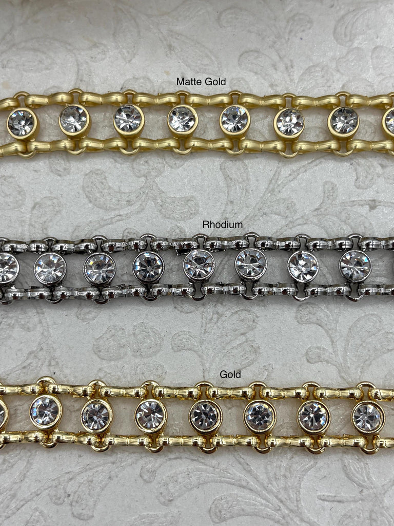 Look no further than the Mixed Link Cable Chains with Clear Crystals! These chains are perfect for creating jewelry pieces that are unique and eye-catching. These chains come in three different finishes (matte gold, rhodium, and gold). Plus, orders placed by 11:00 am EST Monday-Friday ship the same day or next business day, so you can get your chain quickly. And don't worry - it's lead and nickel safe. All sales on cut chain are final.
