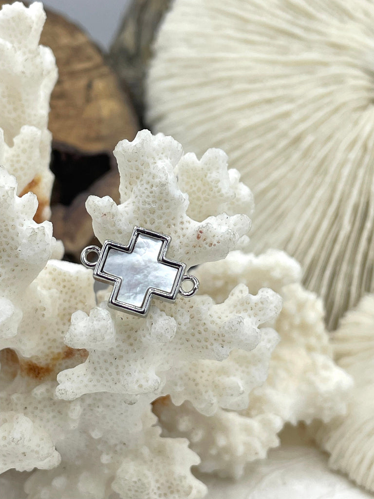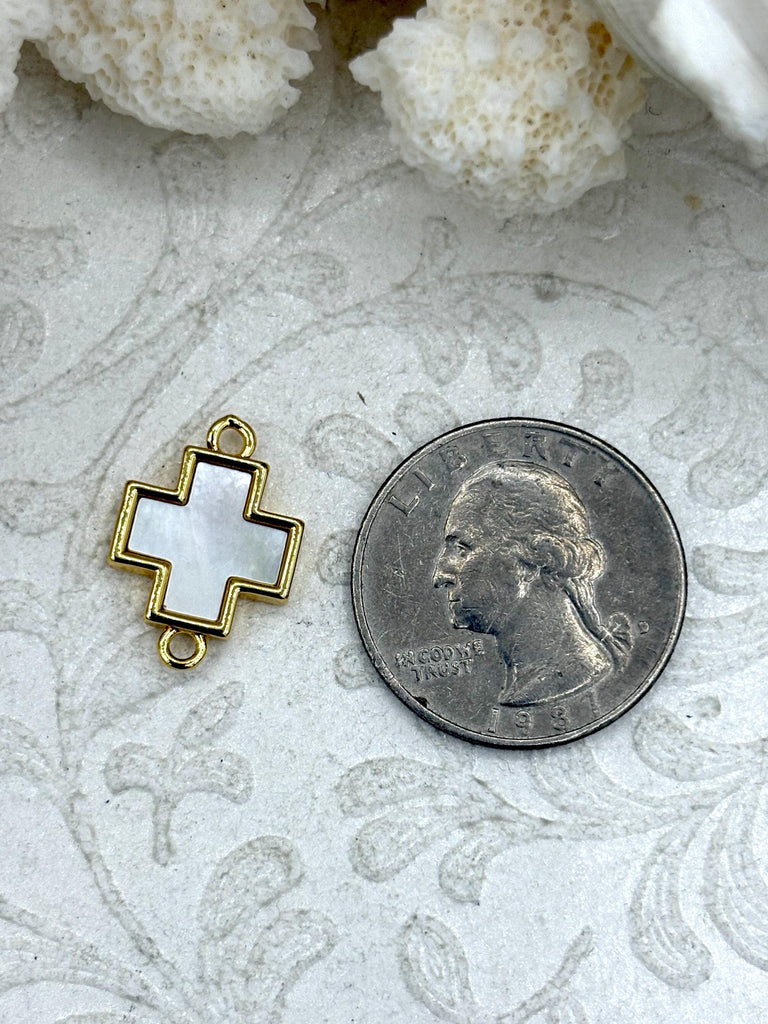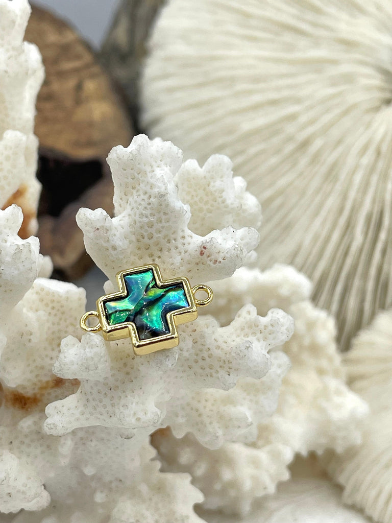 Look no further than our Mother of Pearl and Abalone Cross Connector Charms! These stunning charms come in four styles, your choice of mother of pearl or abalone, with a gold or silver base. Made of plated brass and genuine mother of pearl and abalone shell, these charms measure 13mm x 13mm x 3mm and feature bales with a 1.5mm inner diameter and 3.5mm outer diameter. With fast shipping, you can have these charms in your hands in no time - orders placed by 11:00 am EST Monday-Friday will ship the same day or next business day. And you can rest easy knowing that our charms are lead safe and nickel safe. Elevate your jewelry game with our Mother of Pearl and Abalone Connector Charms today!
