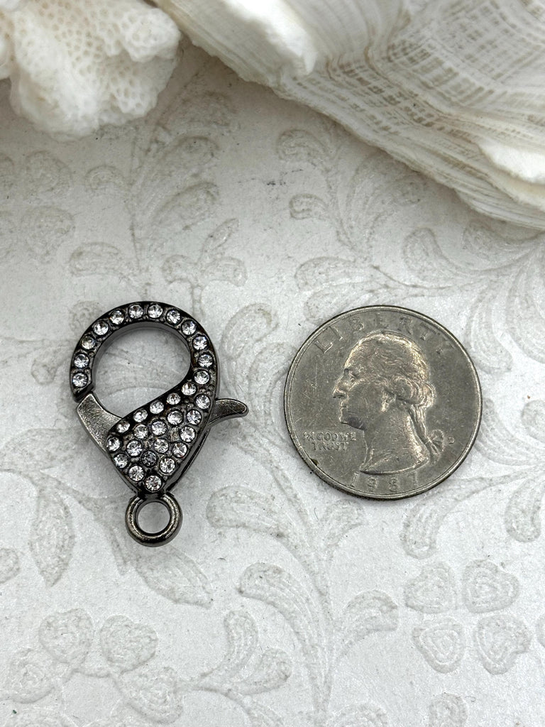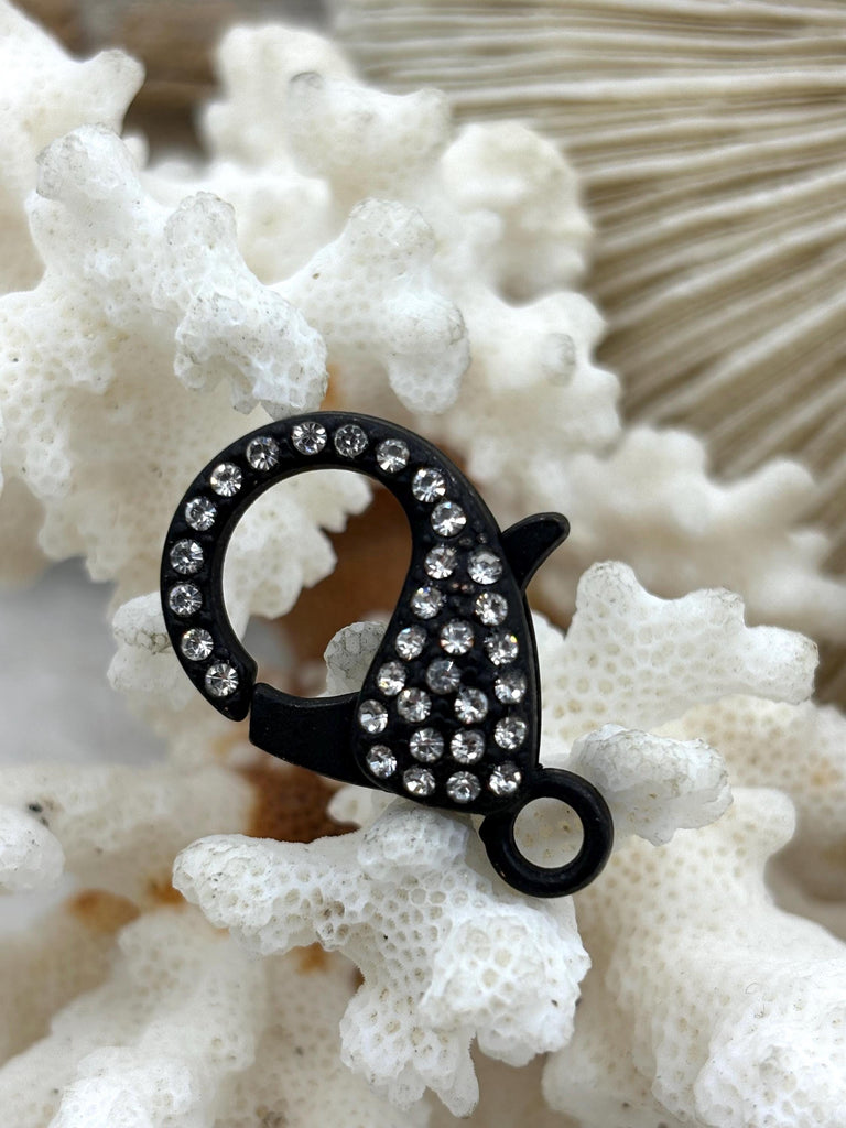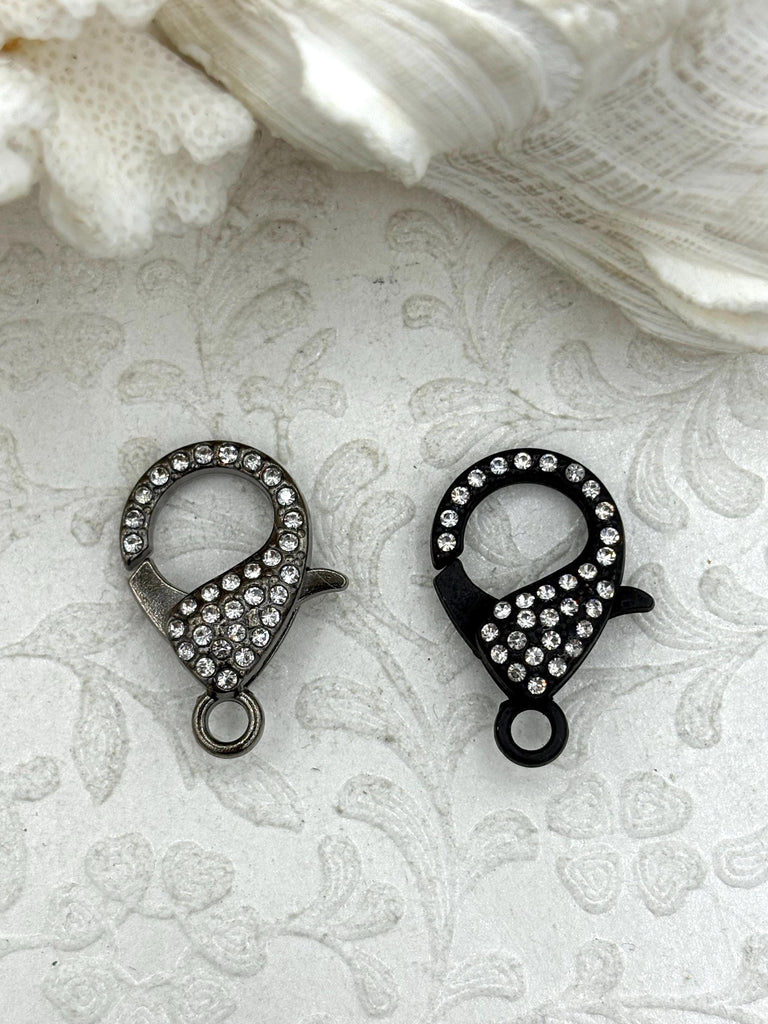 Look no further than our Large Pave Rhinestone Lobster Claw Clasps! These 30mm X 17mm clasps come in 2 styles and feature a lead and nickel safe construction, so you can be sure they are safe for your customers. Plus, orders placed by 11:00 am EST Monday-Friday ship the same day or next business day.