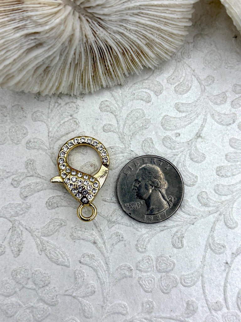 Look no further than our Large Pave Rhinestone Lobster Claw Clasps! These 30mm X 17mm clasps come in 5 styles and feature a lead and nickel safe construction, so you can be sure they are safe for your customers. Plus, orders placed by 11:00 am EST Monday-Friday ship the same day or next business day.