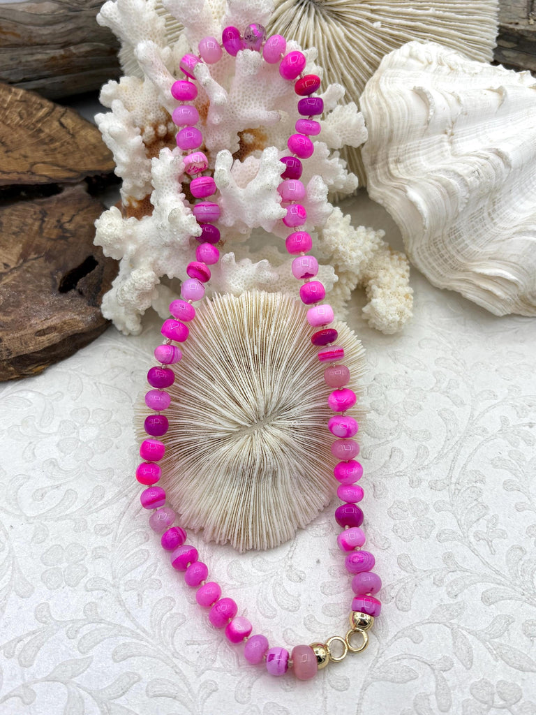 Peruvian Hot Pink Opal Hand Knotted Necklace