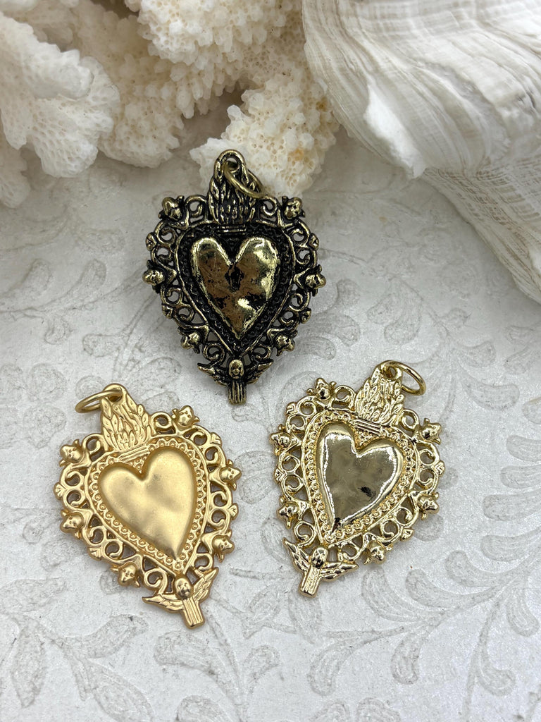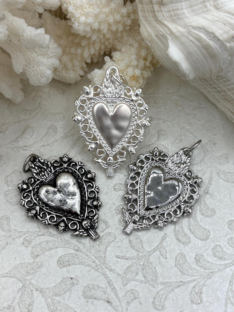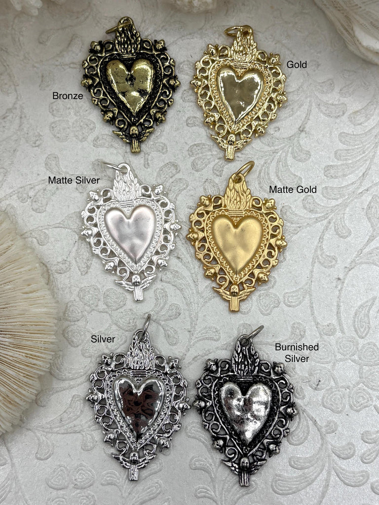Look no further than our Zinc Alloy Heart Charms! These charming heart-shaped charms come in 6 stunning finishes including matte gold, burnished silver, gold, matte silver, bronze, and silver. Measuring at 41mm x 29mm and 2mm thick, these charms are made of plated zinc alloy, ensuring durability and quality. Plus, with our fast shipping policy, orders placed by 11:00 am EST Monday-Friday will ship the same day or next business day. Worried about safety? Our Zinc Alloy Heart Charms are lead and nickel safe, making them perfect for all your crafting needs.